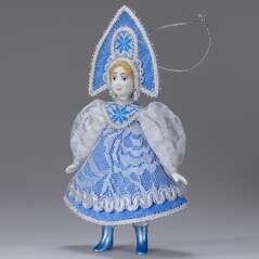 Ёлочная игрушка Снегурочка в кружевном платье 17 см. Christmas tree toy: Russian doll Snegurochka. Handmade.
