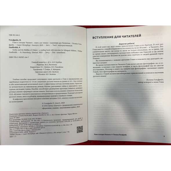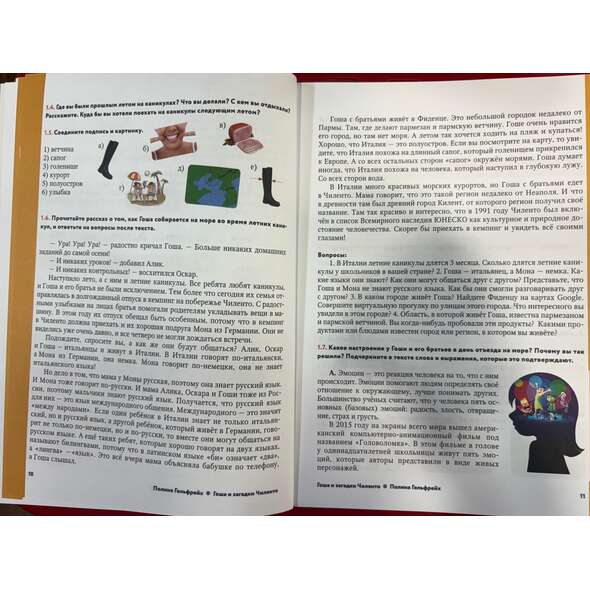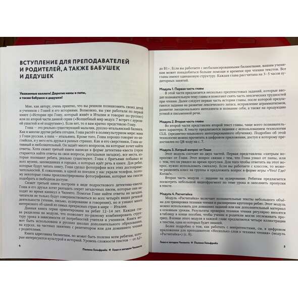 Учебное пособие продолжает популярную серию рассказов о Гоше и предназначено для зарубежных подростков 12–14 лет, владеющих русским языком на уровне от А2+. Оно сочетает в себе захватывающий детективный сюжет и эффективные методы изучения языка. Герои книги путешествуют по живописному региону Италии, разгадывают тайны и знакомятся с культурным наследием страны. Пособие способствует расширению кругозора учащихся, развивает речевые умения и формирует мягкие навыки. Благодаря использованию элементов технологии CLIL обучение становится максимально интерактивным и продуктивным. Подходит для курсов русского языка, школ за рубежом, индивидуальных занятий и семейного чтения.