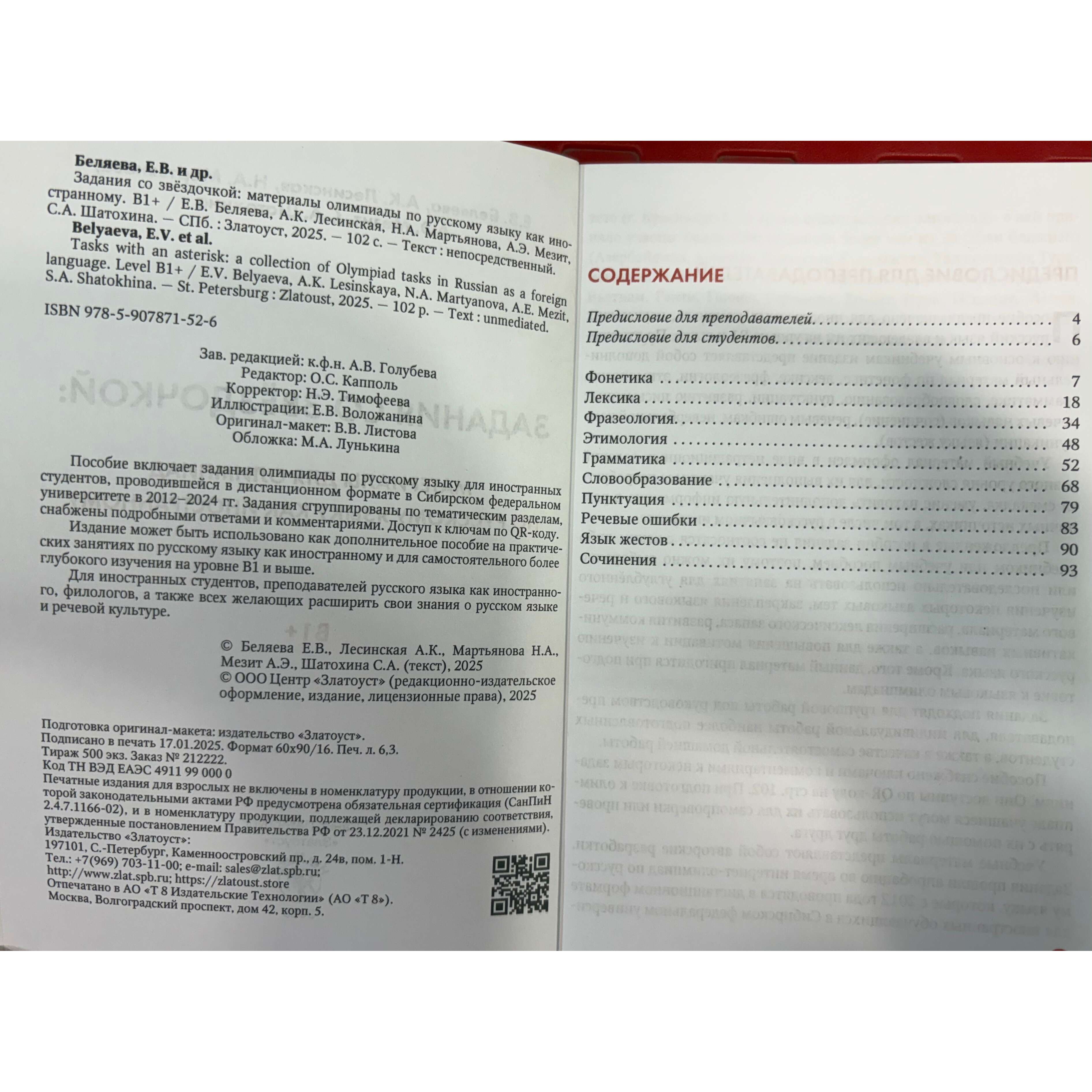 Пособие включает задания олимпиады по русскому языку для иностранных студентов, проводившейся в дистанционном формате в Сибирском федеральном университете в 2012–2024 гг. Задания сгруппированы по тематическим разделам, снабжены подробными ответами и комментариями. Доступ к ключам по QR-коду.