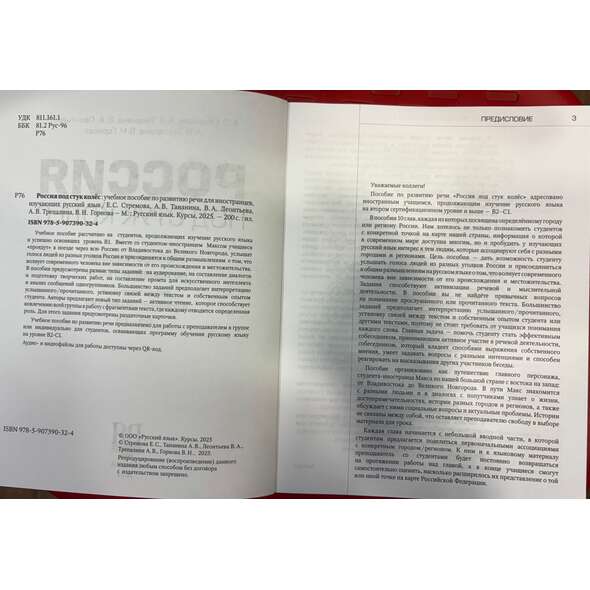 Учебное пособие рассчитано на студентов, продолжающих изучение русского языка и успешно освоивших уровень В1. Вместе со студентом-иностранцем Максом учащиеся «проедут» в поезде через всю Россию от Владивостока до Великого Новгорода, услышат голоса людей из разных уголков России и присоединятся к общим размышлениям о том, что волнует современного человека вне зависимости от его происхождения и местожительства. В пособии предусмотрены разные типы заданий: на аудирование, на составление диалогов и подготовку творческих работ, на составление промта для искусственного интеллекта и анализ сообщений одногруппников. Большинство заданий предполагает интерпретацию услышанного/прочитанного, установку связей между текстом и собственным опытом студента. Авторы предлагают новый тип заданий — активное чтение, которое способствует вовлечению всей группы в работу с фрагментами текста, где каждому отводится определенная роль. Для этого задания предусмотрены раздаточные карточки.