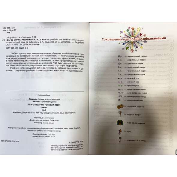 Учебник продолжает заявленную линию обучения детей-билингвов, проживающих за пределами России. Его особенность – комплексное развитие всех видов речевой деятельности: чтения, говорения, аудирования, письма, а также лексико-грамматическое наполнение. В УМК представлен системный курс русского языка с использованием приемов РКИ. Курс нацелен на когнитивное развитие билингвов, на развитие мышления, кругозора, творчества.